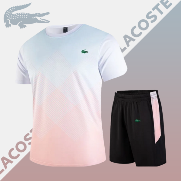This Lacoste – ProGrid Dynamic Set features a stylish geometric gradient pattern that reflects energy and motion. Strategically placed details enhance its modern look, while moisture-control and ventilation technology keep you cool under pressure. It’s athletic wear that blends performance with flawless style.